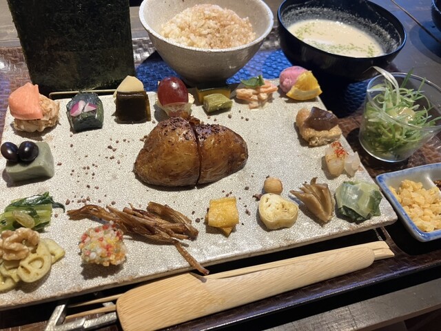 Auf einem Tablett werden etwa 50 sorgfältig ausgewählte Zutaten präsentiert, darunter frittierter Seitan, kirschblütenaromatisiertes Kartoffelpüree und saisonales gegrilltes Kyoto-Gemüse. Die kreative Verwendung von Kräutern und Früchten in der japanischen Küche schafft ein einzigartiges kulinarisches Erlebnis, das nur hier zu finden ist. Das Menü wechselt monatlich, um saisonale Zutaten zu integrieren.